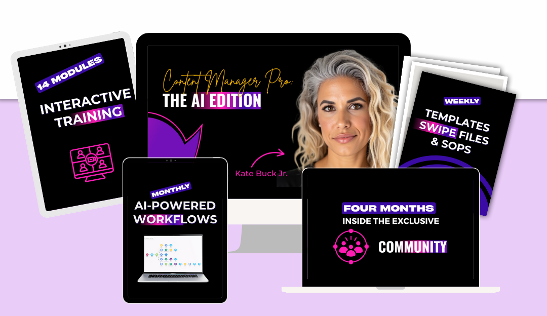 Content Manager Pro - AI Edition is a 14-module training and community designed to help you finally